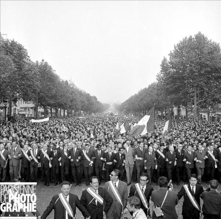 3.-Una associació freudiana em porta a triar una imatge de la gran manifestació a París del 30 de maig del 1968, après l’anarchie. Va ser organitzada pels comités de défense de la république i els historiadors francesos parlen d’un milió de persones al carrer. En primera línia, es poden reconèixer, entre d’altres, M.Poniatowski (que seria després Ministre de l’Interior), M.Schumann (que havia desembarcat a Normandia i que fou un col·laborador directe de De Gaulle a Anglaterra) i André Malraux, que no necessita presentació. Amb una estètica una mica camp, llueixen satisfets la tricolor sense tanques. Potser la decadència comença quan es perd la tensió, el nervi i l’orgull republicà.