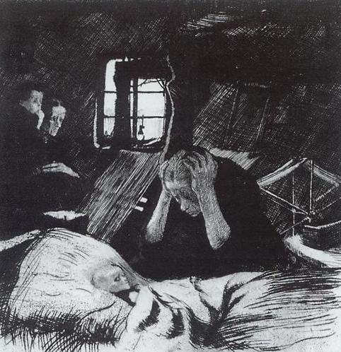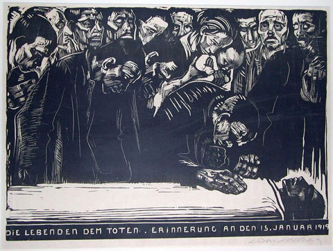 3.-La fotografia que hem triat avui correspon a un gravat de Käthe Kollwitz: “La vida i la mort. En memòria de Karl Liebknecht” (1921). Käthe Kollwitz fou una interessantíssima artista alemanya, amb una evolució que va del naturalisme a l’expressionisme i amb una enorme capacitat per a mostrar la misèria dels més desgraciats (gana, pobresa i guerra). Les fotografies del dia anterior, com varem indicar, també són seves. Observeu els rostres i l’impressionant to elegíac de tota la composició: