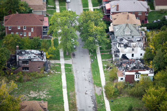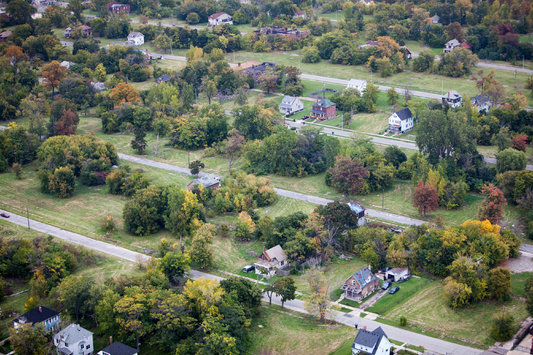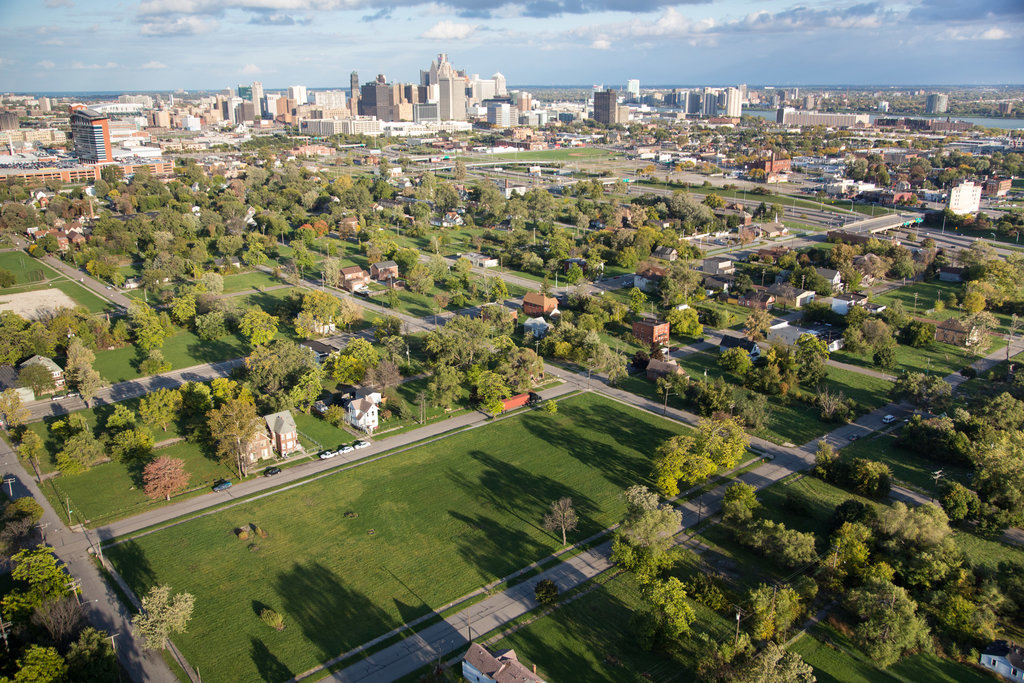 Actualmente, desde el aire, se observa que la decadencia ha suavizado su ritmo. Los terrenos que antes cubría la porquería se han limpiado y se ha segado la maleza. Nuevos espacios verdes, junto a jardines públicos y huertos, dan un aspecto casi bucólico al perfil del centro urbano. Desde mi avión, capto el potencial para el resurgimiento de estas áreas. Puedo observar que los barrios podrán transformarse en espacios más adecuados para desplazarse a pie y para diferentes actividades y usos. Se apunta la posibilidad de nuevas tiendas, transporte público, parques cercanos y escuelas. Sin embargo, este renacimiento depende de una ciudad que está atrapada en la quiebra. También depende de una Administración Pública con suficiente fuerza para consolidar la transformación de los terrenos vacantes en zonas urbanizadas y en espacios libres.