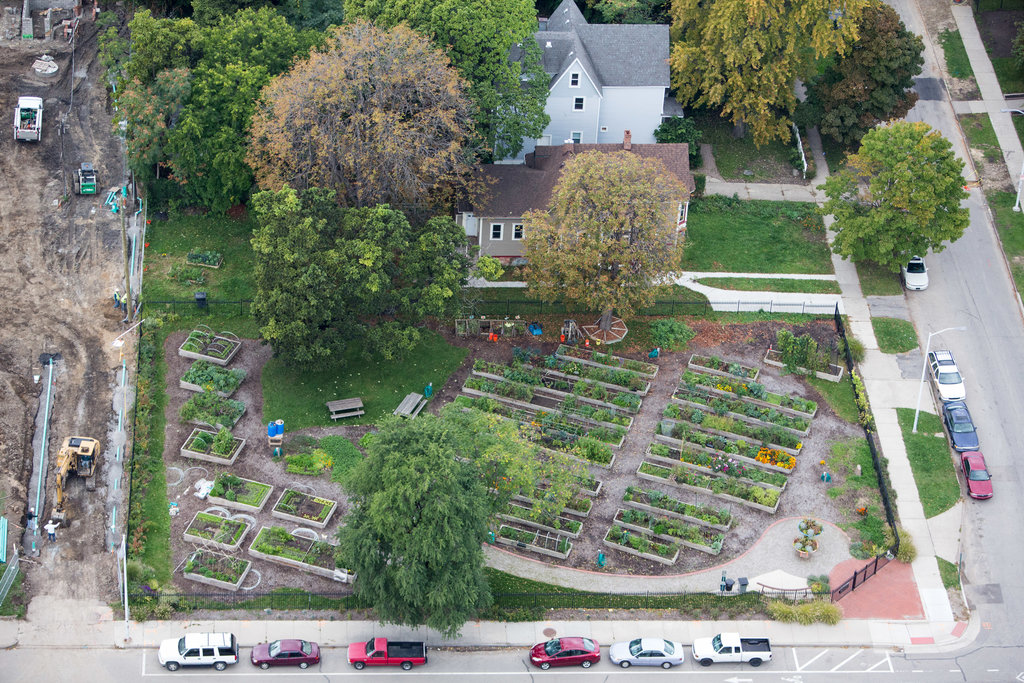 LOS HUERTOS DE «NORTH CASS COMUNITY GARDEN», SITUADOS EN TRES FINCAS ANTERIORMENTE EN RUINAS. ESTA EXPLOTACIÓN OFRECE MÁS DE 75 HUERTOS A LOS HABITANTES Y A LOS ESTABLECIMIENTOS DE LA ZONA.